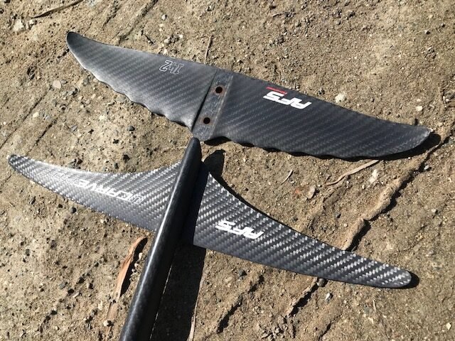 In the past weeks I had the opportunity to test and compare the F-One SK8 850/xxxs monobloc stab 180 to the AFS Silk 850/stab 142. The SK8 was paired with a F-One 85cm HM mast and the Silk to a AFS 85cm UHM mast. Both foils have a medium high aspect ratio of 8 and were designed to excel in carving waves.